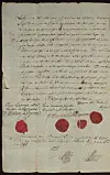 Vi må reise tilbake til 1638 for å finne det neste diplomet i samlingen vår datert den 17. mai. Dette er et pergamentdiplom med alle de 6 seglene til vitnene hengende ved. Det var Lensmann Tosten Lauritssønn Finne, Jørgen Mosefinn, Knut Honve, Iver Li, Halle Ygre og Siver Dukstad som har forseglet dokumentet. Dette er igjen en kunngjørelse dokumentert på Vossevangen: «Olluf Ollufdssøn på Gjøastein i Borstrand åtting på Voss kunngjør, at han har solgt til sin bror, Jørgen Olluffssøn på Hefte i Borstrand åtting, sitt odelsgods i samme Hefte. Han takker for god betaling.» som det står i diplom-katalogen vår.