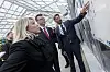 Fagleg ansvarleg for prosjektet, Hans Kleivdal (t.h.), viser fram korleis teknologien verkar til Næringsminister Monika Mæland og UiB-rektor Dag Rune Olsen.