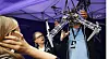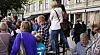 Litt utanom rektors lysløype finn vi Sun Yi på stand. Den kinesiske ambassaden held nok eit auge med henne, men her kan ho seie det ho vil. Og praktisere Falung Gong, den religiøst orienterte meditasjonen. Ho kom som asylsøkar for sju år sidan. Då hadde ho sete to år i arbeids- og omskuleringsleir.