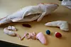 På arbeidspulten ligg lever, galleblære, magesekk og tarm, milt og ein gonade og testikkel. Alt er sydd etter teikning, og Söderstrøm og Goksøyr meiner storleiken er ganske rett – og fargane òg.