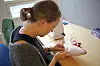 Sofie Söderstrøm ler. Ho er vitskapeleg assistent knytt til prosjektet dCod ved Institutt for biovitskap, og saman med stipendiat Siri Øfsthus Goksøyr har ho rett og slett sydd torskeinnvollar.