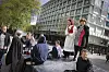 Miljeteig tok den korte spaserturen fra Rådhuset til Den blå steinen for å vise sin støtte til meningsfellen Gita Frimannslund Storegjerde.