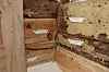 Bygningskonservator har skrapt seg gjennom flere lag med grønt, oransje og rosa for å finne ut hvilken farge tømmerveggene opprinnelig var malt i.