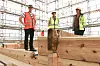 Avinors Petter Hope og UiBs Åse Tveitnes og Heidi Lie Andersen har én felles interesse: At lystgården som måtte vike for den nye terminalen på Flesland skal få et langt og rikt liv hos UiB. Foto: Dag Hellesund