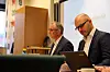Tage Båtsvik (t. h) har vært interimstyrets sekretær og høyskoledirektør ved Stord/Haugeund. Her med styreleder Arild Hallén.