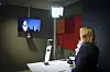 Anne B. Swanberg er direktør for den digitale satsingen på BI. Her viser hun frem studiet forelesere kan bruke til å spille inn korte videobolker eller lede nettmøter. Foto: Tor H. Monsen