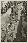 Pikespeiderne i Flaggtoget på vei ned Skansesvingene. Enna foto, Bergen. Spesialsamlingene. UB Bergen