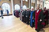 På veg inn til seremonien. Helga Nowotny og Jon Fosse fremst. Æresdoktor Æresdoktorpromosjon Helga Nowotny Jon Fosse Sverre Mauritzen