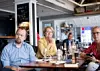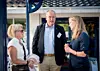 NTNU-rektor Gunnar Bovim i samtale med UiT-rektor Anne Husebekk og NMBU-rektor Mari Sundli Tveit utenfor Tyholmen hotell i Arendal.