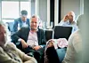 Direktør Sveinung Skule i NIFU innledet på konferansen Kompetanse for fremtidens Norge, som Universitetet i Agder arrangerte i samarbeid med Forskningsrådet, NIFU og Universitets- og høgskolerådet. Her deltar han i samtale med blant andre NSO-leder Theres Eia Lerøen og Charlotte Skourup, som er forskningsleder i ABB og styremedlem i SFI Mechatronics. Foto: Skjalg Bøhmer Vold