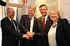 - Brüssel er Europas forskningshovedstad. Å være her er essensielt for forskere som ønsker å være en del av det internasjonale forskningsfellesskapet, sier statssekretær i Kunnskapsdepartementet, Bjørn Haugstad. Her flankert av NTNU-rektor Gunnar Bovim, UiB-Dag Rune Olsen og SINTEFs konsernsjef Unni Steinsmo.