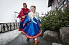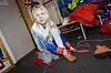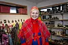 Saga Brodin (9) var med mor Marita Monsen på jobb. Saga har kommager på beina og kofte fra Kautokeino. Foto: Tor Farstad