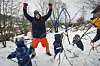 Blå er den kaldeste fargen, men det kan se ut som om grønn er den beste. Olav Bolstad-Hageland koser seg i snøen, der han og noen av de yngste får male med både grønn, gul, rød og blå. Foto: Tor Farstad
