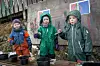 Lavrans Aaby Mjanger er tre, Mira Hagelsteen Varga og Frida Sherman Karlsen fire. Men alle tre kan forbokstavene sine, og de vet at det er samefolkets dag. Foto: Tor Farstad