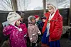 Bortigard barnehage markerte 6. februar med både samisk musikk og samiske flagg. Men mest stas var det nok å få se en ekte samekofte. Saga Brodin forteller til Esma Elise Telet, Samah Ahmed Balal, Ilham Balal, Vilde Raknes Svendsen og Erle Raknes Svendsen. Foto: Tor Farstad