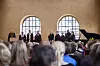 Bestemor Heidi Hvidevold passa vesle Audun medan mor Hilde Kristine sat inne blant dei nye doktorane.