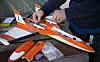 UiBs egen drone er et standard modellfly, som er forsterket her og der. En kraftigere motor og propell som klapper sammen er én av justeringene. Foto: Nikita Solenov Joachim Reuder viser små, fjernstyrte fly som kan skaffe meteorologiske data. Droner, SUMO fly prosjekt meteorologisk