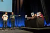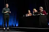 Programleiar Roe Lauvås jr. i samtale med dommarpanelet: Siri Kleiven Strøm, Sverre Breivik og Ingvil Brügger Budal.