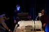 Den er både tung og dyr rekvisitten til Tobias Wolf. Her tester dei at alt er som det skal på genralprøva. Foto: Knut Egil Wang