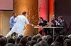 Tone Aspevik, Nofima/Institutt for biologi, Universitetet i Bergen, serverte dommerne smaksprøver fra hennes forskning på hvordan man kan utnytte fiskeavfall som menneskemat. Foto: Tor Farstad
