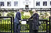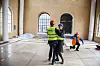 Aulaen får hovudinngang gjennom Muséhagen. Ny aula i Universitetsmuseet er i ferd med å bli ferdig. Porten gjennom Muséhagen er i ferd med å bli montert.