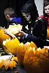 Mange tok seg også tid til å skjære ut gresskar og det ble mange fine og forskjellige gresskarhoder. Barn og voksne kunne oppleve en mystisk og spennede kveld på Universitetsmuseet, De kulturhistoriske samlinger, torsdag denne uken. Det var nemlig duket for halloween på en litt annerledes måte. Mange hadde kledd seg ut i skumle kostymer og deltok på de ulike aktivitetene rundt om på museet. Man kunne blant annet være med på spøkelsesjakt, utskjæring av gresskar og De dødes verksted. Det var til tider en uhyggelig stemning, og mange barn (og voksne) ble skremt av "levende døde" som vandret rundt i mørke rom for å skremme de besøkende. Det var hengt opp spindelvev og satt ut dødningshoder rundt om for å lage det ekstra skummelt og spennede. Alle var utstyrt med lommelykter ettersom hele museet var mørklagt. Man visste derfor ikke hva som ventet rundt neste hjørne. (slik man kan se på bilde _MG_7640 f.eks) Mange tok seg også tid til å skjære ut gresskar og det ble mange fine og forskjellige gresskarhoder.