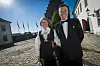 Jusdekan Asbjørn Strandbakken og kona Nina Berstad Strandbakken. Han i bunad fra Sirdal, hun i bergensbunad. Foto: Tor Farstad