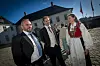 Medievitenskap-professorene Lars Nyre og Asbjørn Grønstad sammen med Stephanie Hazel Wold. Hun er universitetslektor i engelsk ved Institutt for fremmedspråk. Foto: Tor Farstad