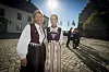Ansvarlig redaktør i På Høyden, Dag Hellesund, og kona Kristine Petersen. Begge i bunad fra Nordhordland. Foto: Tor Farstad