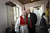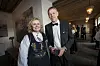 Rektor på Bergen Katedralskole Lise Hårklau Holsen kom saman med ektemannen Nils Hårklau. Ho har på seg festdrakt frå Nordhordland, han Vossabunad.