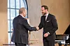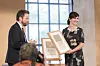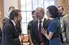 Prisvinner Greenblatt og konen Ramie Targoff i samtale med kunnskapsminister Torbjørn Røe Isaksen. Foto: Tor Farstad