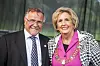 Universitetsdirektør Kjell Bernstrøm og bergensordfører Trude Drevland Immatrikulering 2015, Nygårdsparken. Kjell Bernstrøm og Trude Dreveland.
