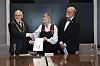 Rektor Sigmund Grønmo og bibliotekdirektør Ole Gunnar Evensen representerte UiB da avtalen ble inngått. Kim Friele Skeivt arkiv *** Local Caption *** Kim Friele Sigmund Grønmo Ole Gunnar Evensen