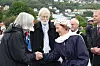 Dronning Sonja helsar på Dusa Mc Duff, kona til Abelprisvinnaren, i 2011. Bak er prisvinnaren John Willard Milnor og rektor Sigmund Grønmo. Foto: Åse Johanne Roti Dahl H. M. Dronning Sonja helsar på kona til Abelprisvinnaren, Dusa Mc Duff *** Local Caption *** Dusa Mc Duff (frå v.) og Dronning Sonja. Bak er John Willard Milnor