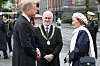 Dronning Sonja og rektor Jan Fridthjof Bernt i anledning UiBs 50 år. Foto: Magnus Vabø Bes¿k i anledning UiB 50 Œr kongelig *** Local Caption *** Dronning Sonja ; Jan F. Bernt