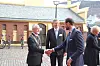 Fylkesmann Lars Sponheim, kronprins Haakon og rektor Dag Rune Olsen finn plassane sine under utdelinga av Holbergprisen 2015. Foto: Tor Farstad Lars Sponheim, kronprinsen og Dag Rune Olsen, Holberg 2015