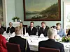 Ordfører Kristian Helland, rektor Kirsti Koch Christensen, Kronprins Haakon Magnus og universitetsdirektør Kåre Rommetveit til bords i 2002. OLYMPUS DIGITAL CAMERA biokonferanse, kongelig til bords *** Local Caption *** Kristian Halleraker ; Kirsti Koch Christensen ; Kronprins Haakon Magnus ; KŒre Rommetveit