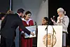 Kronprins Haakon, Petrona del Socorro Lopez Rios, Yeli Ofemia Baca Koolman og kronprinsesse Mette-Marit er på scenen når tildelinga frå Kronprinspartes Humanitære Fond går til Fundaction Xochiqueztzal. Foto: Bjørn Erik Larsen Kronprinsparbesøk august 2008. Tildeling fra Kronprinspartes Humanitære Fond i Studentsenteret Tildeling til Fundaction Xochiqueztzal *** Local Caption *** Kronprins Haakon, Petrona del Socorro Lopez Rios, Yeli Ofemia Baca Koolman, Kronprinsesse Mette-Marit