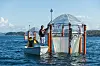 Mesokosmer kaller marinbiologene disse paviljongene i sjøen, som er små, isolerte verdener av sjøvann inne i store plastposer som går dypt i sjøen. Her inne kan forskerne hente opp prøver på daglig basis for å følge algenes utvikling. Foto: Tor Farstad