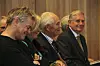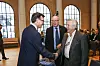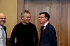 Aulaen var fredag òg ein møtestad for tidlegare helsetoppar. Her helsar Dag Rune Olsen på Gunnar Bovim og Stener Kvinnsland. Utdeling av BFS-stipend og Brøgger-medalje i aulaen. Bergens forskningsstiftelse. Frå venstre Dag Rune Olsen, Gunnar Bovim og Stener Kvinnsland.