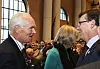Det er alltid tid til ein tête-à-tête når Trond Mohn og Dag Rune Olsen møtest. Utdeling av BFS-stipend og Brøgger-medalje i aulaen. Bergens forskningsstiftelse. Frå venstre Trond Mohn og Dag Rune Olsen