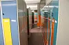 Bak en grønn dør, som viser at man er på veg inn til et rom som tilhører en avdeling, finner man det som må være de sprekeste garderobeskapene i Realfagbygget. Læringssenter realfagbygget rehabilitering