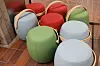 Fargerike puffer er foreløpig lagret på kontoret hos infosenteret, som skal på plass ved inngangen til læringssenteret. læringssenter realfagbygget rehabilitering
