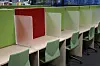 Eiendomsavdelingen har egne interiørarkitekter. Det er de som har plukket ut møbler i spreke farger. Studentene kan velge mellom ulike typer arbeidsplasser. Læringssenter realfagbygget rehabilitering