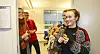 Ikke alle forstyrrelser i eksamenslesingen er av det onde. Blide studenter tok lett lattermildt imot Luciaopptoget.