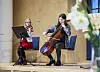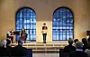 Studentar frå Griegakademiet spelte under minnestunda. Minnestund for terroroffera i Paris. Studentar frå Griegakademiet spelte.