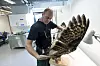 1,92 i vengjespenn, måler førsteamanuensis Terje Lislevand og taksidermist Ari Puolakoski. Universitetsmuseet Taksidermist Ari Puolakoski Utstilling Naturhistorisk Havørn Terje Lislevand
