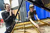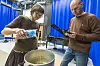 Griegakademiet sin overingeniør Davide Bertolini er begeistra over dei ulike lydane i pianoet når Else Olsen Storesund preparerer. Foto: Tor Farstad