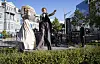 Wilhelm Koren Christie og venninna Karen Marie kom sjølvsagt til sin eigen fest. Christie snakka både bergensk og dansk, medan venninna vart oppglødd over at det truleg var gratis drikkevarer å få i hagen. Opning av universitetsaulaen Aula Christie og Karen Marie