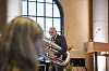 – Åh, det er så tungt! De må aldri finna begynna å spela tuba, sa Magnus Brandseth frå Eikanger-Bjørsvik Musikklag. Han viste at det store messinginstrumentet kan brukast til langt meir enn akkompagnement. Opning av universitetsaulaen Aula Magnus Brandseth
